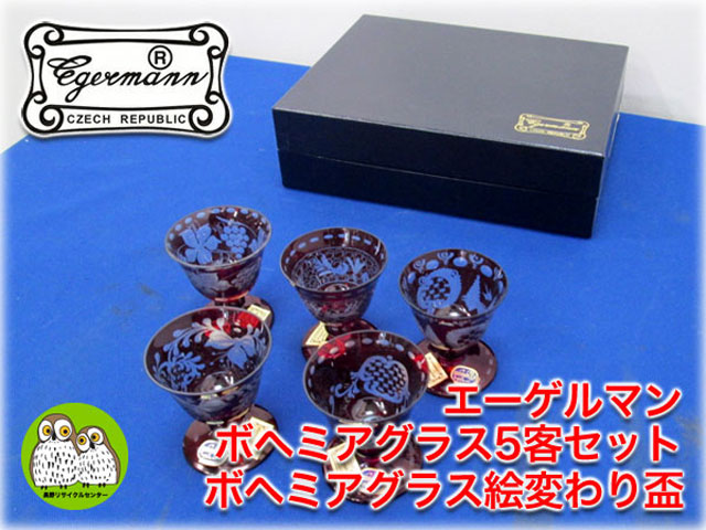 エーゲルマン ボヘミアグラス5客セット ボヘミアグラス絵変わり盃