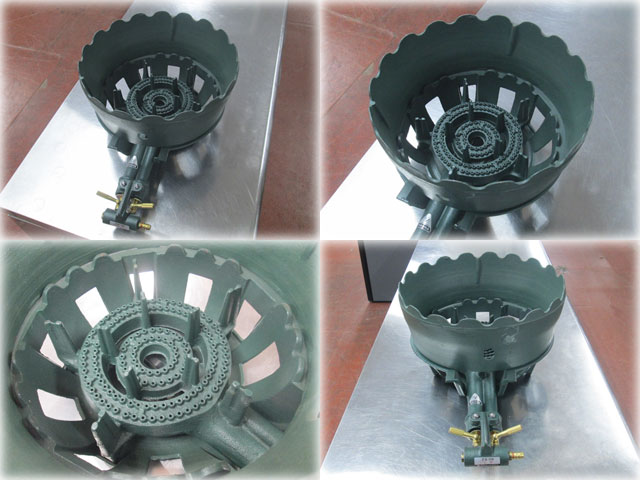 穴あきタイプの二重の鋳物コンロで、