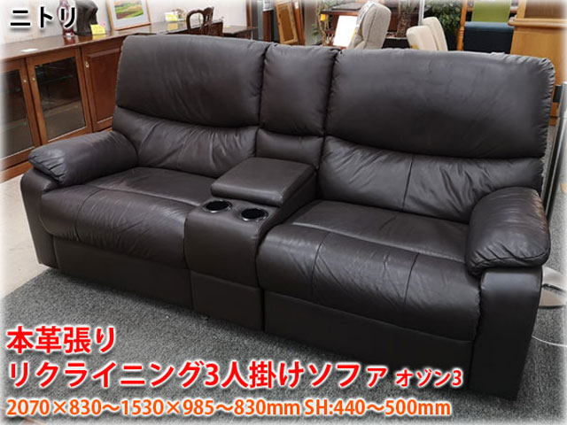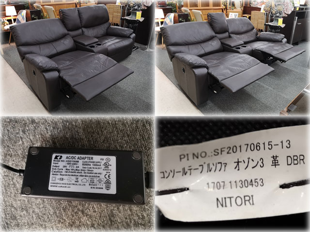 ニトリ 本革張2人掛電動リクライニングソファ コンソールテーブルソファ オゾン3 革 DBR