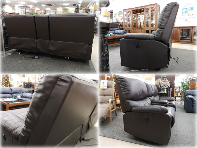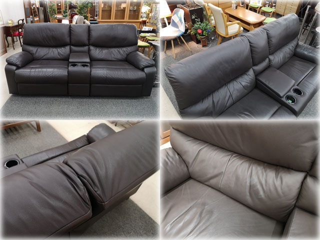 > 本革張2人掛電動リクライニングソファ