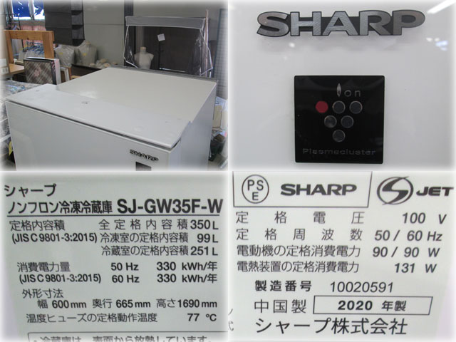 シャープ 3ドア冷蔵庫 SJ-GW35F-W