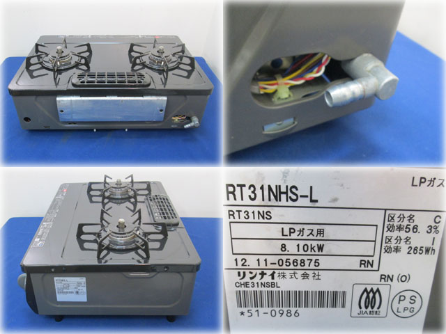 リンナイ 水なし片面焼グリル付ガステーブル CHE31NSBL(RT31NHS-L)