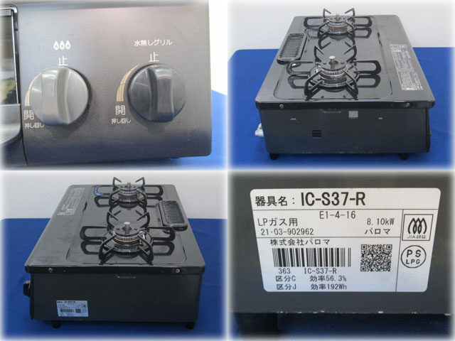 パロマ 水なし片面焼グリル付ガステーブル IC-S37-R