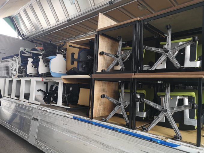 オフィス家具10tトラック2台分買付致しました。
