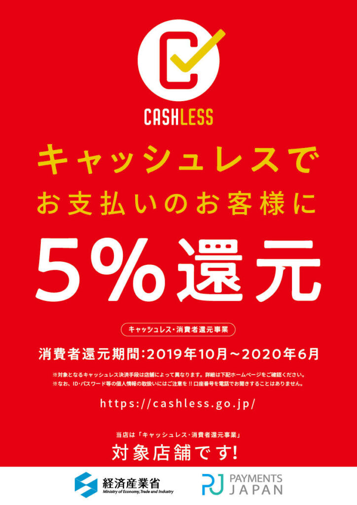 「キャッシュレス・消費者還元事業」対象店舗です