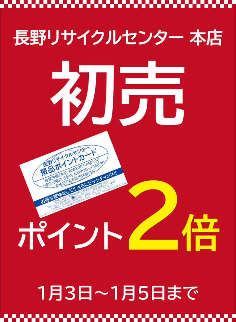 初売り!ポイント2倍!!(1/3~1/5まで)