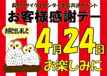 4月24日(日)はお客様感謝デー‼️