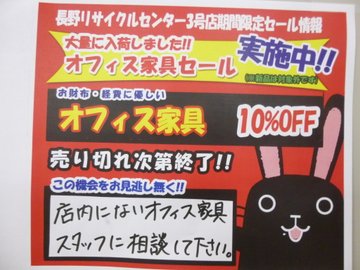 今、3号店ではオフィス家具10%OFF‼️