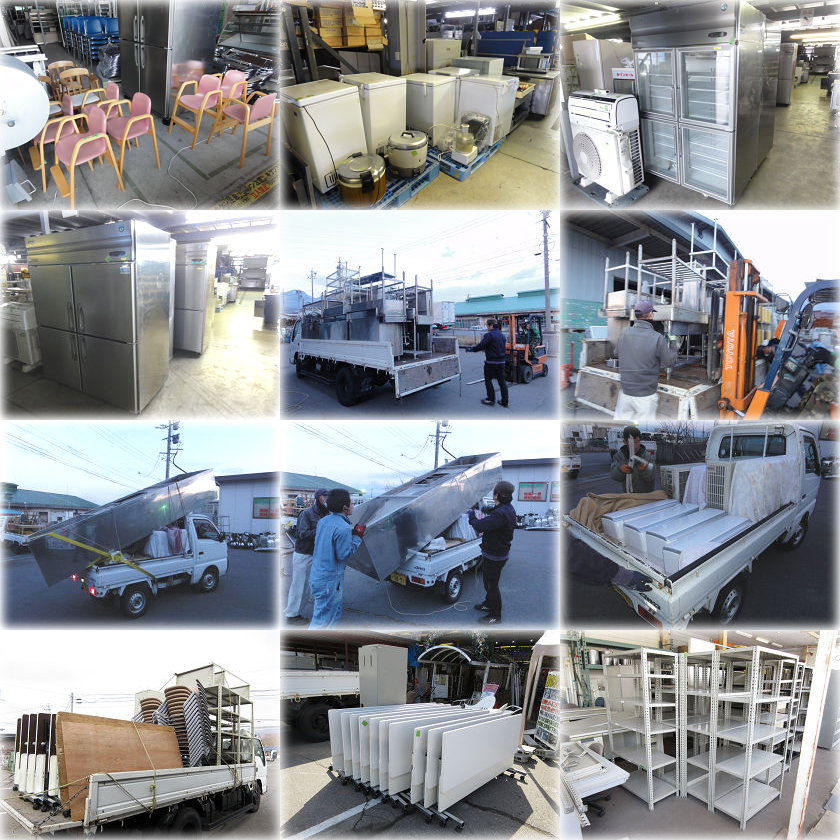 製氷機、縦型冷蔵庫、コールドテーブル、ストッカー、ガスレンジ、上火グリラー、