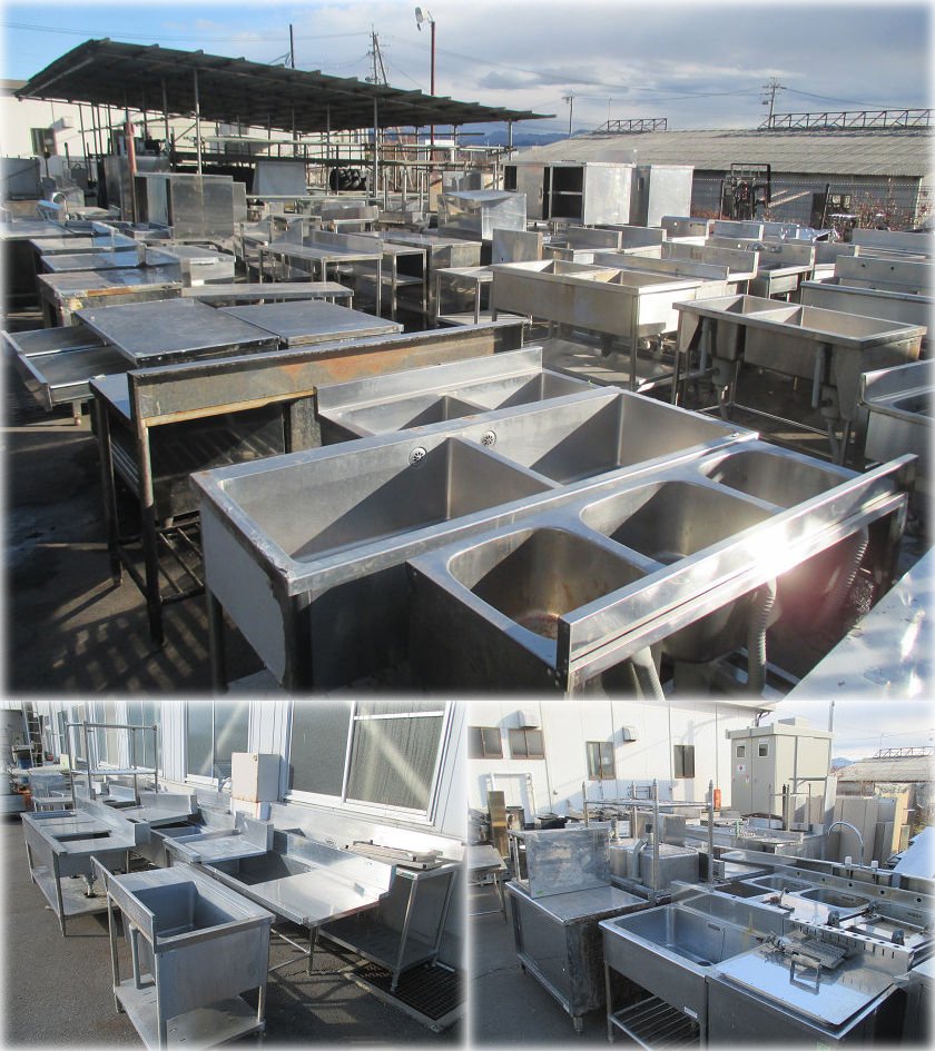 厨房で使う各種シンク、コンロ台、作業台、ソイルドなど大量入荷!