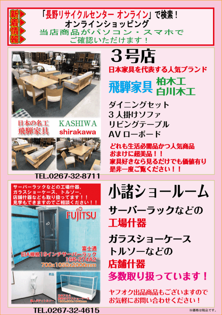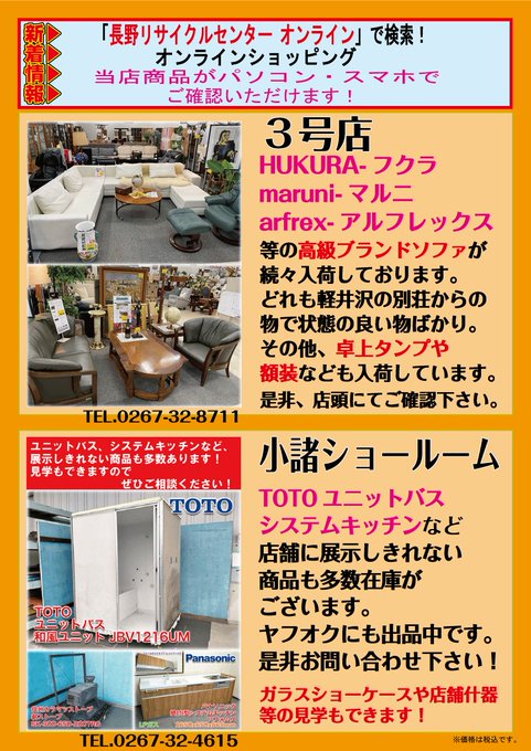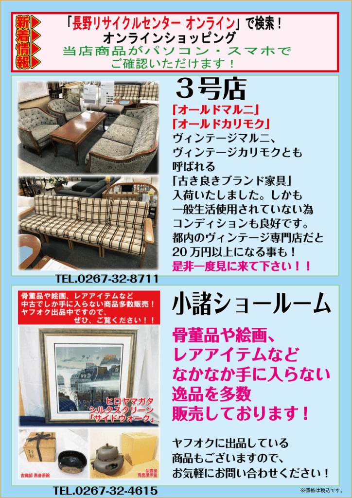 現在本店、3号店、小諸ショールームにて取り扱っております🙏